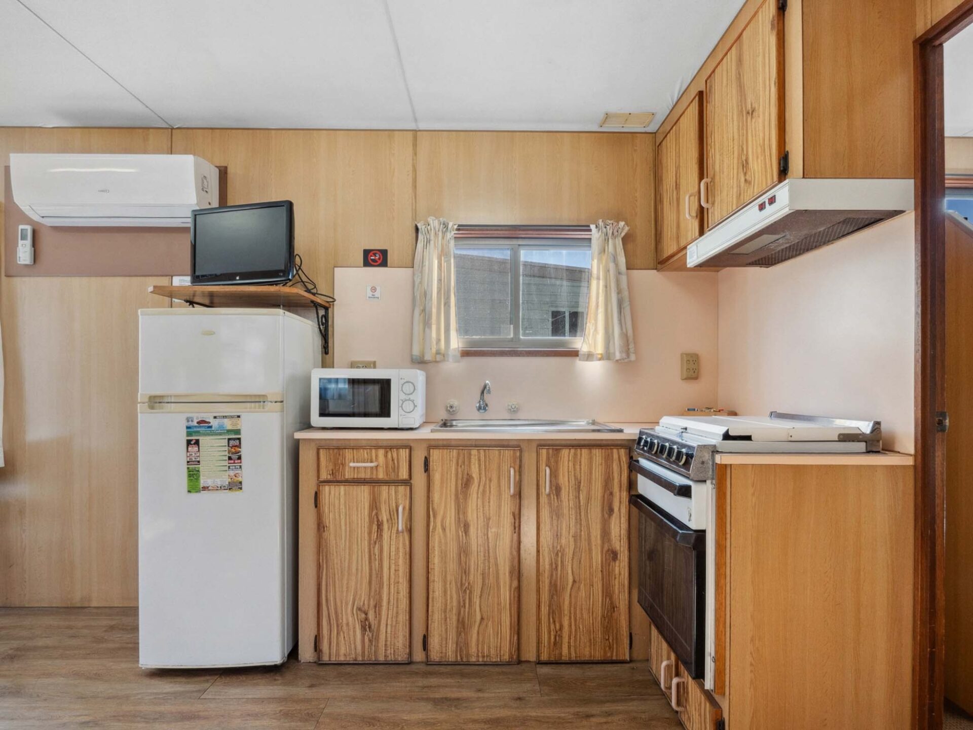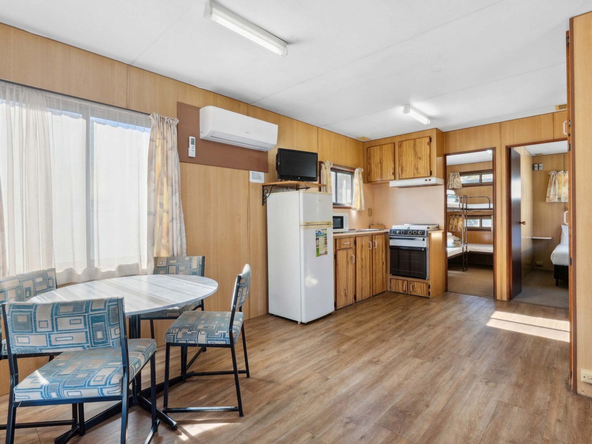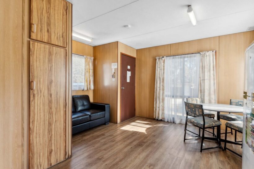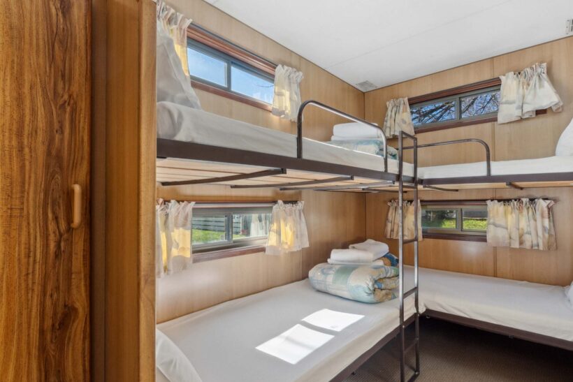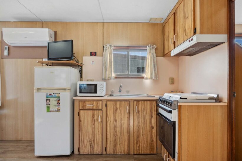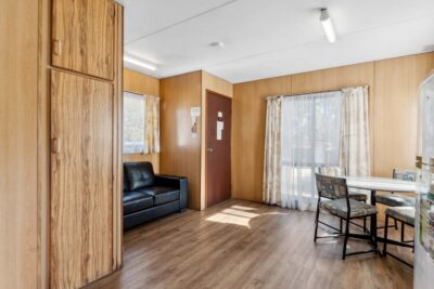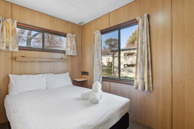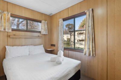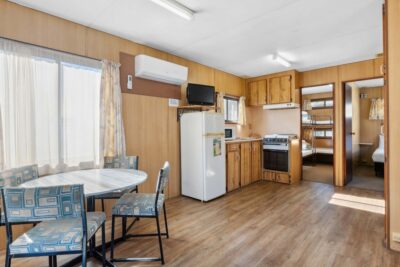 This pet-friendly two-bedroom cabin is ideal for families, sleeping up to six with a double bed and two sets of bunk beds. Enjoy the convenience of a full-size fridge, microwave, gas stovetop, and reverse cycle air conditioning. TV and on-site parking add to the ease of your stay.