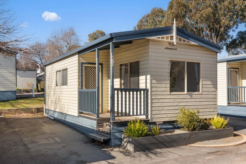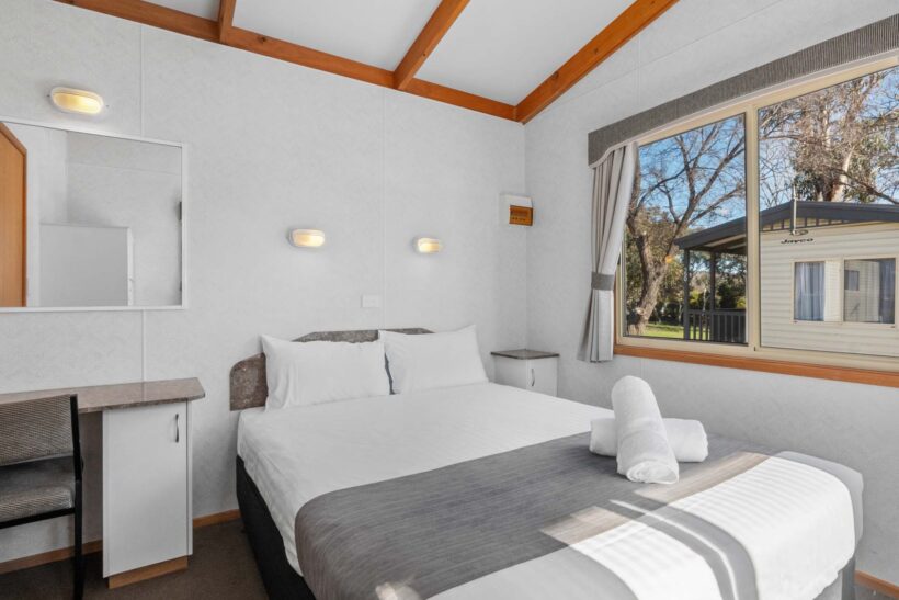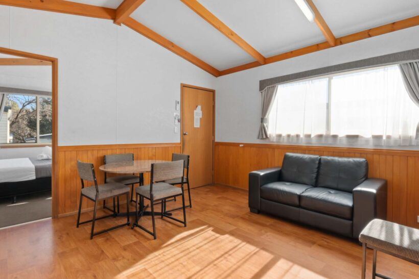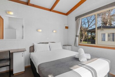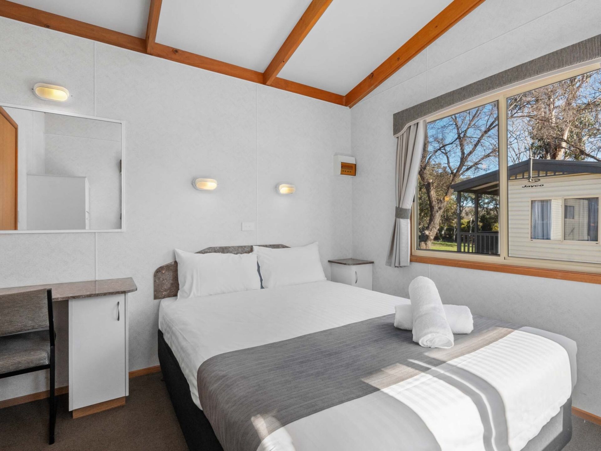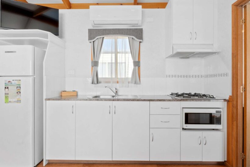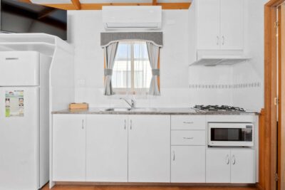 This two-bedroom cabin offers comfortable accommodation for up to four guests with one queen bed and one double bed. Enjoy the convenience of a bar fridge, microwave, and gas stovetop, along with reverse cycle air conditioning. A private balcony provides a space to relax outdoors, with parking just steps from your door.